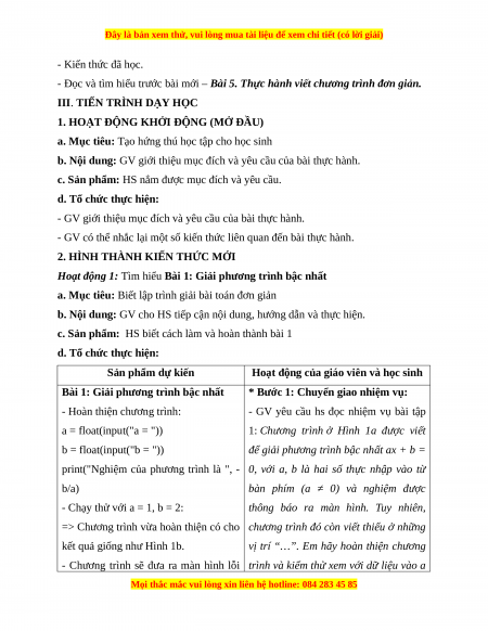 Giáo án Tin học 10 Bài 5 (Cánh diều): Thực hành viết chương trình đơn giản