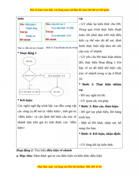 Hoạt động 2: Tìm hiểu điều kiện rẽ nhánh