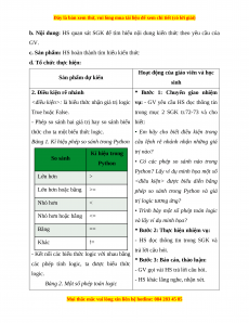 - Máy tính có kết nối với máy chiếu, máy tính đã cài sẵn phần mềm Python. 2. Học sinh - Sách giáo khoa, vở ghi.