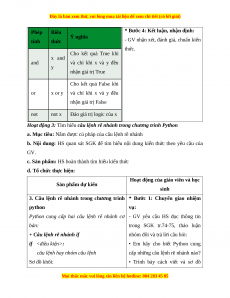 - Viết được câu lệnh rẽ nhánh trong Python.