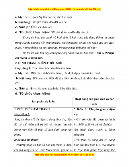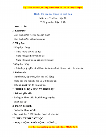 - Đọc trước bài 6. Dữ liệu âm thanh và hình ảnh.