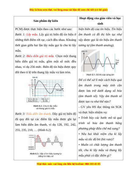 Câu 1: Khi số hóa âm thanh, chu kì lấy mẫu