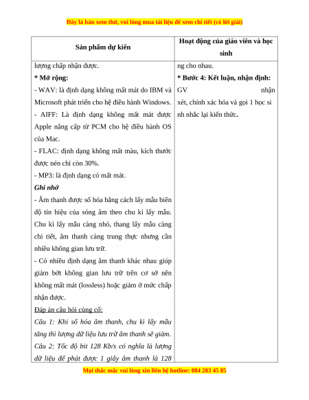 - Muốn chất lượng âm thanh tốt thì cần lấy mẫu lưu trữ âm thanh cùng với đặc