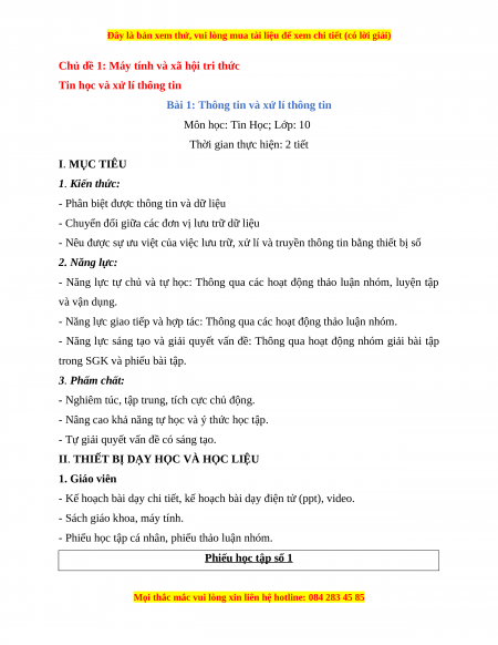 Giáo án Tin học 10 Kết nối tri thức | Giáo án Tin học 10 mới, chuẩn nhất