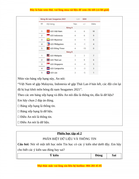 Theo các em bảng xếp hạng và điều An nói đâu là thông tin, đâu là dữ liệu?