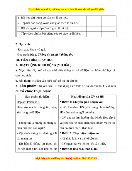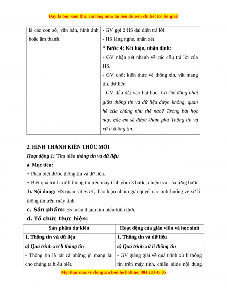 Hoạt động 1: Tìm hiểu thông tin và dữ liệu a. Mục tiêu: