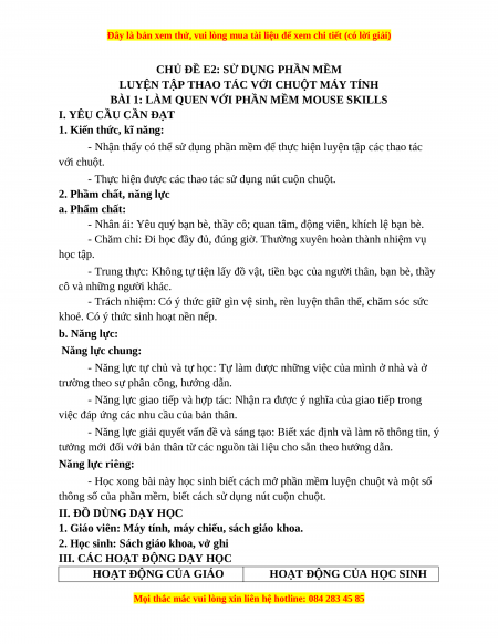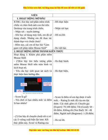 Giáo án Tin học 3 Cánh diều Bài 1: Làm quen với phần mềm MOUSE SKILLS