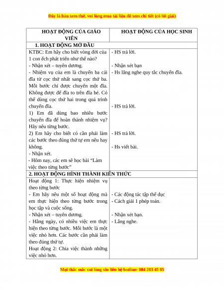 - Hôm nay, các em sẽ học bài “Làm việc theo từng bước”