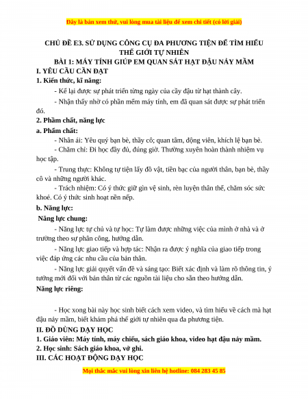 Giáo án Tin học 3 Cánh diều Bài 1: Máy tính giúp em quan sát hạt đậu nẩy mầm