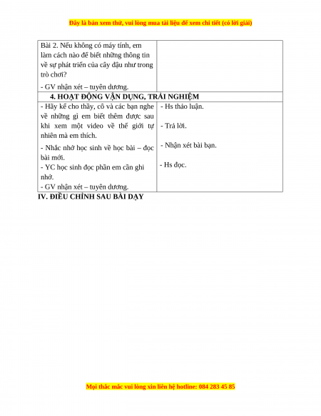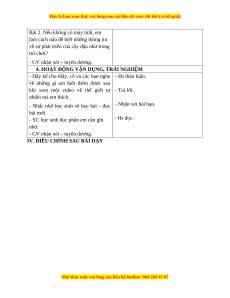 IV. ĐIỀU CHỈNH SAU BÀI DẠY