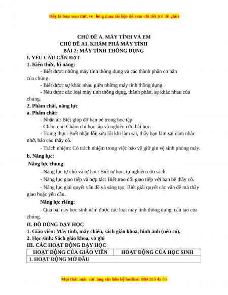 Giáo án Tin học 3 Cánh diều Bài 2: Máy tính thông dụng