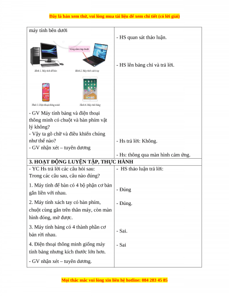 - Hs: Máy tính để bàn, laptop, máy tính