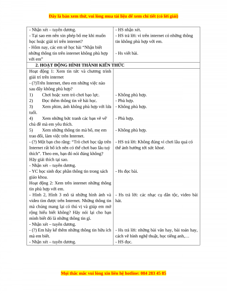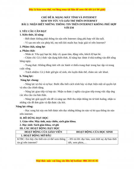 Giáo án Tin học 3 Cánh diều Bài 2: Nhận biết những thông tin trên internet không phù hợp với em
