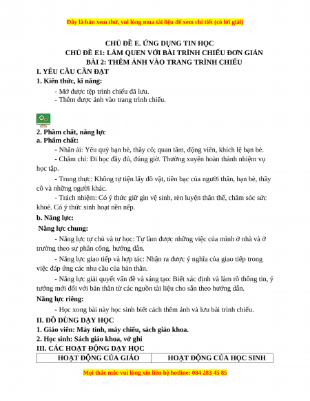 CHỦ ĐỀ E1: LÀM QUEN VỚI BÀI TRÌNH CHIẾU ĐƠN GIẢN