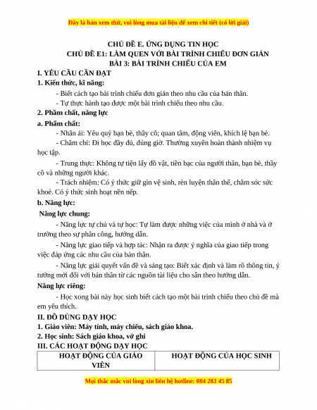 CHỦ ĐỀ E1: LÀM QUEN VỚI BÀI TRÌNH CHIẾU ĐƠN GIẢN