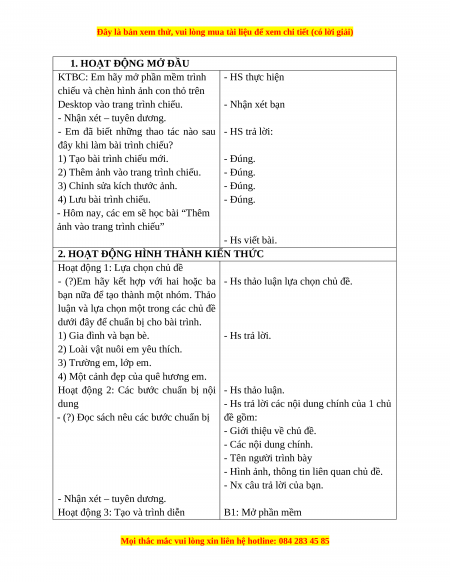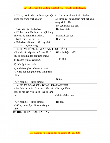 Hoạt động 3: Tạo và trình diễn