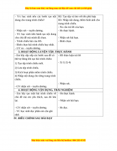 IV. ĐIỀU CHỈNH SAU BÀI DẠY