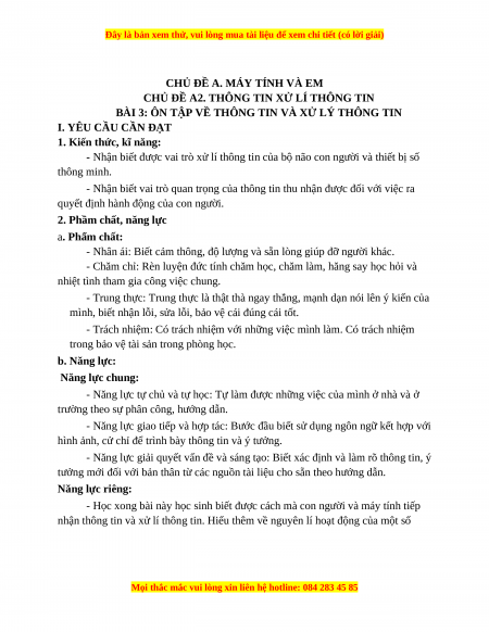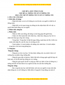BÀI 3: ÔN TẬP VỀ THÔNG TIN VÀ XỬ LÝ THÔNG TIN I. YÊU CẦU CẦN ĐẠT