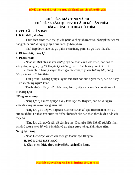 Giáo án Tin học 3 Cánh diều Bài 4: Cùng thi đua gõ phím