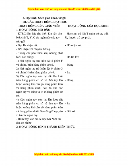 III. CÁC HOẠT ĐỘNG DẠY HỌC