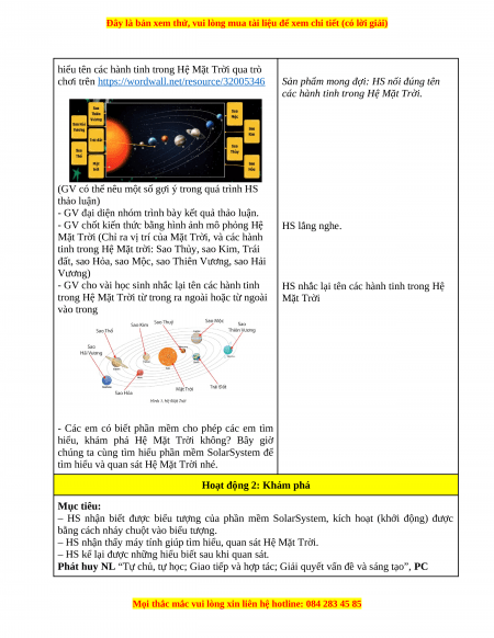 - Sau đó GV giới thiệu với phần mềm SolarSystem và dẫn dắt để giới thiệu cho HS biết: