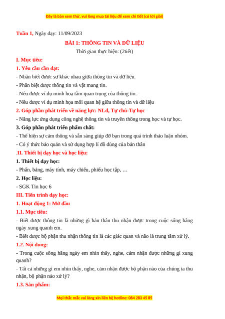 Giáo án Tin học 6 Bài 1 (Kết nối tri thức): Thông tin và dữ liệu