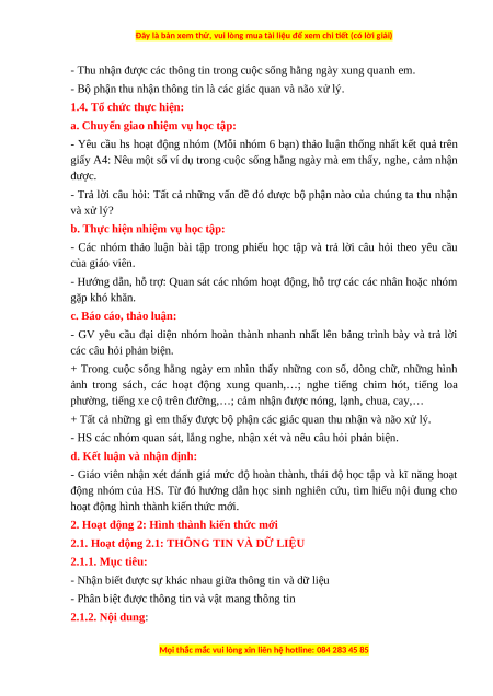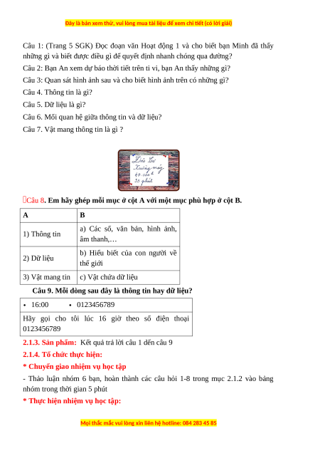 2.1. Hoạt động 2.1: THÔNG TIN VÀ DỮ LIỆU 2.1.1. Mục tiêu: