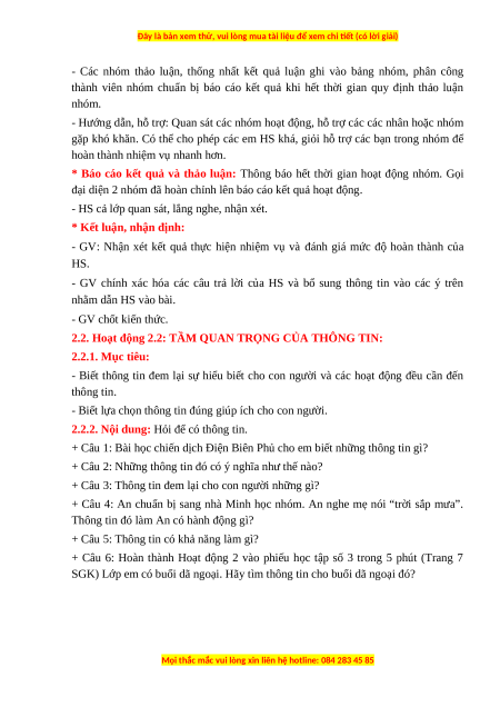 - Phân biệt được thông tin và vật mang thông tin 2.1.2. Nội dung: