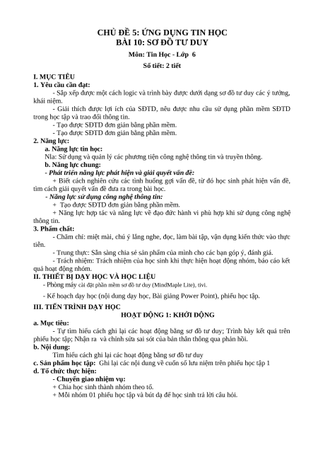 Giáo án Tin học 6 Bài 10 (Kết nối tri thức): Sơ đồ tư duy