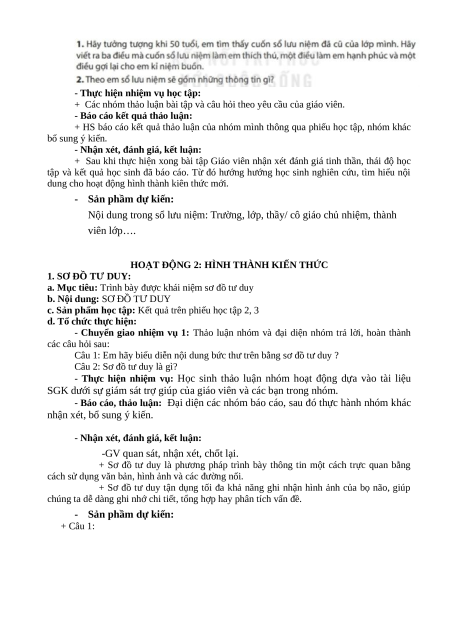 Câu 1: Thảo luận nội dung về cuốn sổ lưu niệm của lớp, sau đó tạo SĐTD trên giấy
