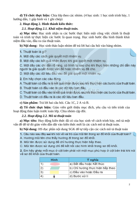 b) Nội dung: HS đọc phần nội dung SGK để tự tiếp cận các cách mô tả thuật toán 2 c) Sản phẩm: