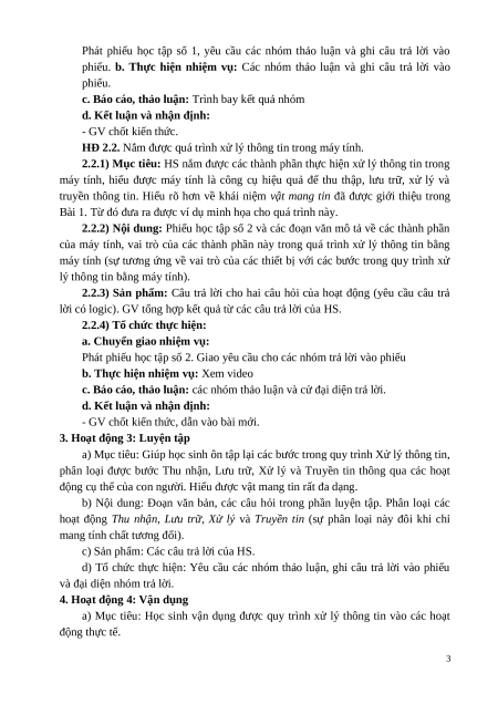 HĐ 2.2. Nắm được quá trình xử lý thông tin trong máy tính.