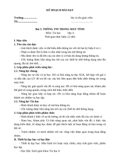 Giáo án Tin học 6 Bài 3 (Kết nối tri thức): Thông tin trong máy tính