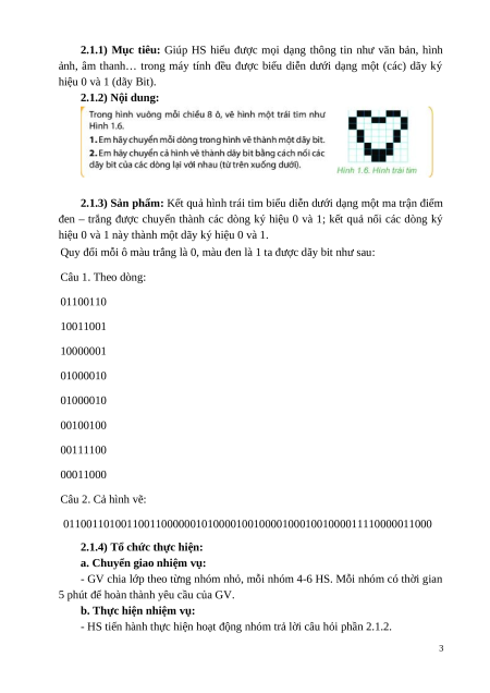 được biễn diễn dưới dạng một dãy các ký hiệu 0 và 1. 1.2) Nội dung: