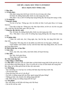 BÀI 4: MẠNG MÁY TÍNH( 2 tiết) I. Mục tiêu: 1. Về kiến thức: