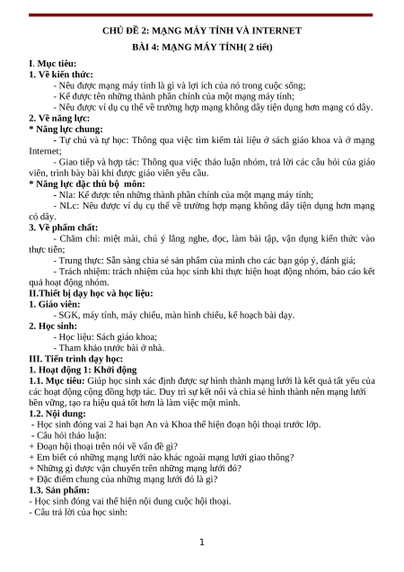 - Nêu được ví dụ cụ thể về trường hợp mạng không dây tiện dụng hơn mạng có dây. 2. Về năng lực: * Năng lực chung:
