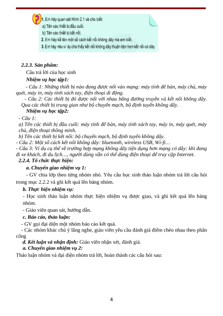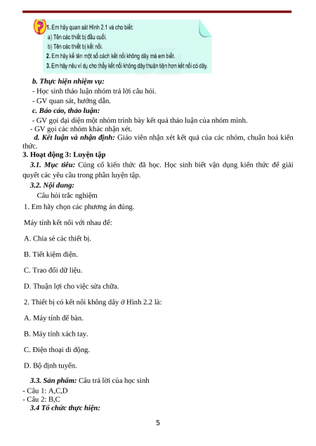 - Câu 2: Các thiết bị đó được nối với nhau bằng đường truyền và kết nối không dây.