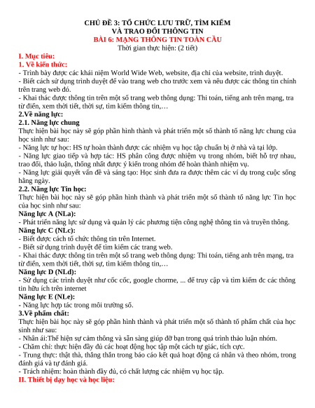 Giáo án Tin học 6 Bài 6 (Kết nối tri thức): Mạng thông tin toàn cầu