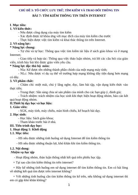 - Thực hiện được việc tìm kiếm và khai thác thông tin trên Internet. 2. Về năng lực: * Năng lực chung: