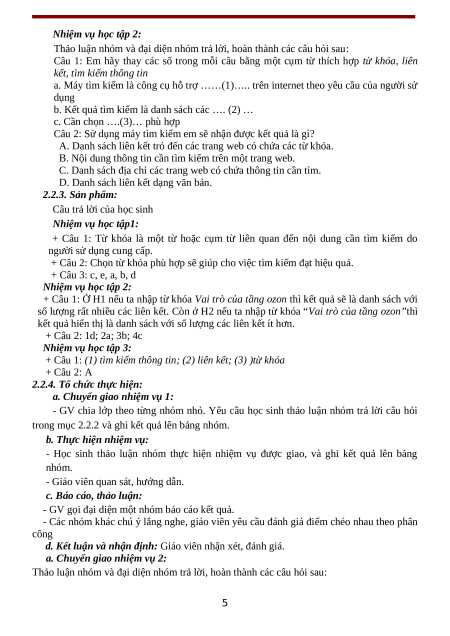 - Giao tiếp và hợp tác: Thông qua việc thảo luận nhóm, trả lời các câu hỏi của giáo