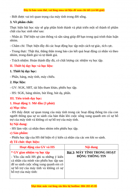 - Biết được vai trò quan trọng của máy tính trong đời sống. 3. Về phẩm chất:
