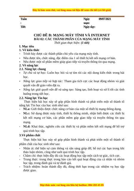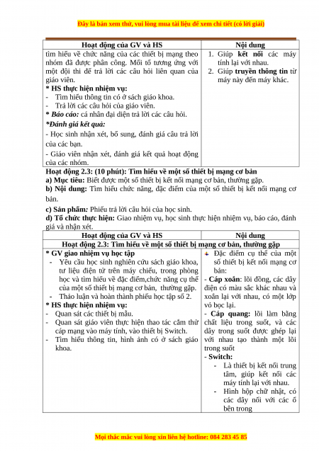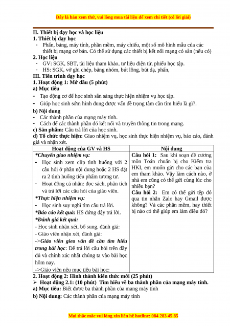 thiết bị mạng cơ bản. Có thể sử dụng các thiết bị kết nối mạng có sẵn (nếu có) 2. Học liệu