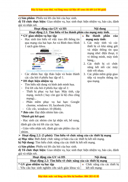qua mạng của hai bạn An và Bình theo Hình 1. Các máy tính và các 1 sách giáo khoa.