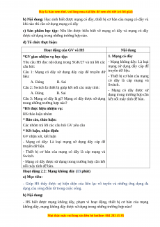 Giáo án Tin học 6 Cánh diều Chủ đề B bài 3: Mạng có dây và mạng không dây