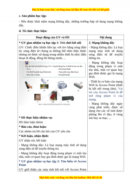 - HS biết được mạng không dây, phạm vi hoạt động, thiết bị cơ bản của mạng