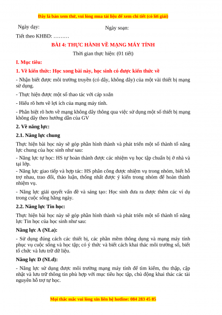 Giáo án Tin học 6 Cánh diều Chủ đề B bài 4: Thực hành về mạng máy tính