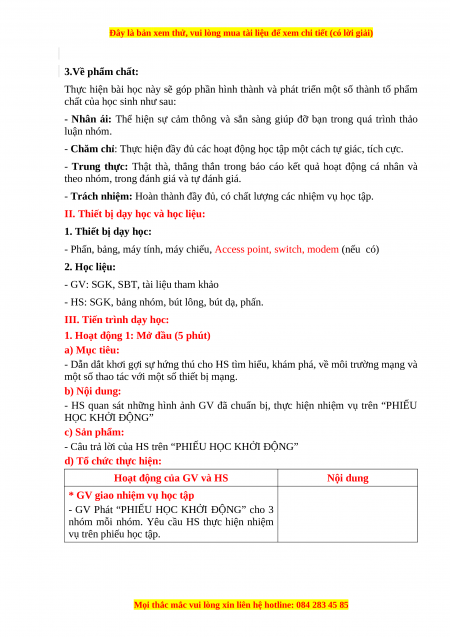 - Phấn, bảng, máy tính, máy chiếu, Access point, switch, modem (nếu có) 2. Học liệu: