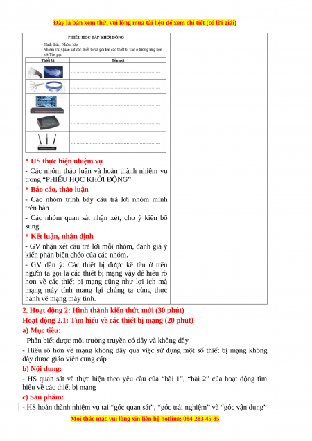 Hoạt động 2.1: Tìm hiểu về các thiết bị mạng (20 phút) a) Mục tiêu:
