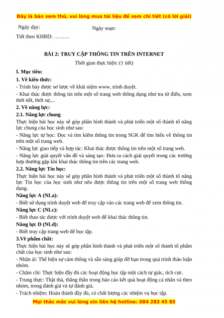 Giáo án Tin học 6 Cánh diều Chủ đề C bài 2: Truy cập thông tin trên Internet