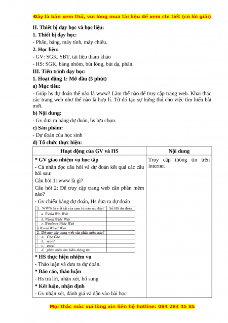 - Giúp hs dự đoán thế nào là www? Làm thế nào để truy cập trang web. Khai thác
